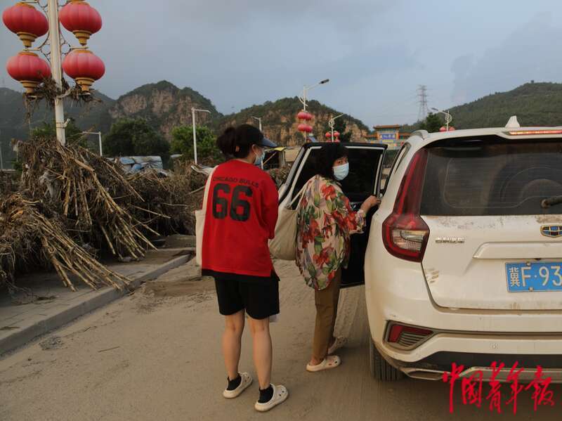 8月5日,北京市门头沟区妙峰山镇丁家滩村,两位村民回村取物品后,在路边搭乘好心人的车辆回临时住地。