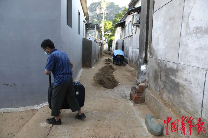8月5日,北京市门头沟区妙峰山镇丁家滩村,村民回村取物品后,离开村子准备返回临时住地。