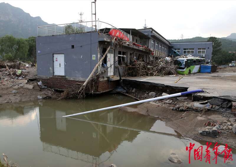 8月5日,北京市门头沟区妙峰山镇丁家滩村,被洪水毁坏的丁家滩村公交场站。