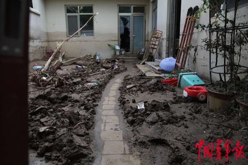 8月5日,北京市门头沟区妙峰山镇丁家滩村,洪水过后,一户村民的庭院。