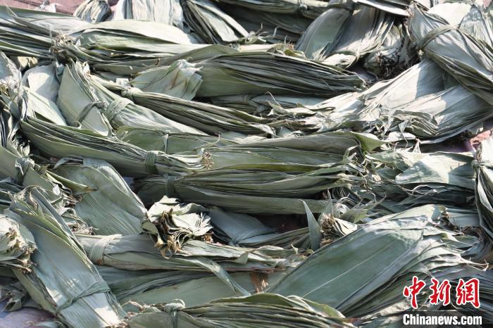 麻竹笋全身都是宝,笋叶可用来包粽子、垫小食等。图为正在晒干的笋叶。吴善基摄