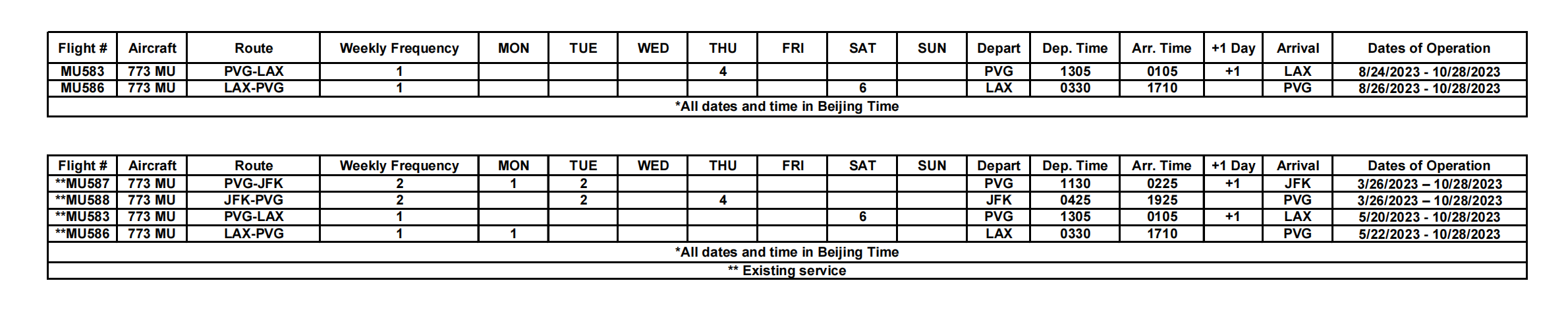 8月11日,国航、东航均向美国交通部提交了最新的中美直飞航班飞行计划。其中,国航计划8月25日到10月27日间,申请新增一班每周五的北京-洛杉矶往返航班。东航计划自8月24日至10月28日间,申请新增一班每周四上海-洛杉矶的往返航班。