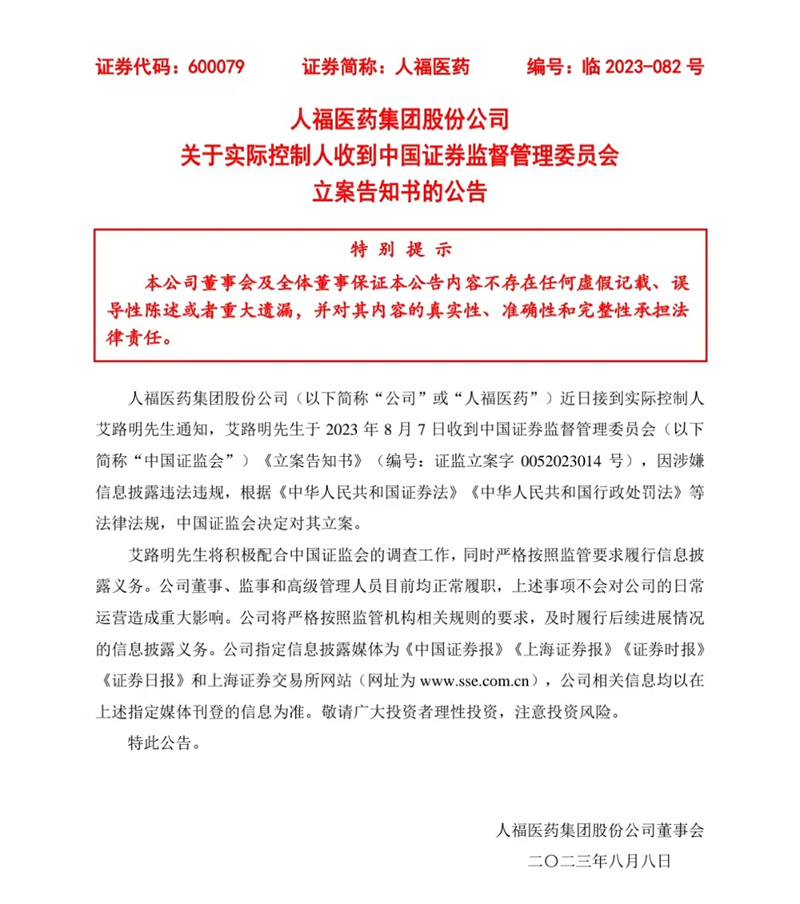 另外,值得注意的是,截至目前,已有多家医药上市公司掌门人、董事长等负责人被查。8月8日,人福医药发布公告称,实控人因涉嫌信披违法违规被中国证监会立案。此前还有卫宁健康实控人因涉嫌行贿罪被立案调查及实施留置;赛伦生物实控人之一、董事长因涉嫌职务犯罪被实施留置并立案调查。更早之前,5月10日晚,“漳州纪委监委”官微发布消息称,漳州市九龙江集团有限公司(下称“九龙江集团”)党委书记、董事长潘杰和漳州片仔癀药业股份有限公司党委委员、副总经理刘丛盛均因涉嫌严重违纪违法,正接受漳州市纪委监委纪律审查和监察调查。