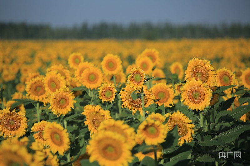 央广网巴彦淖尔8月19日消息(记者魏全民)日前,记者走进内蒙古自治区巴彦淖尔市五原县,田野里一片片黄澄澄、金灿灿,流光溢彩,耀眼夺目。当前,正值向日葵盛开时节,朵朵向日葵向阳而开,金黄的花海颇为壮观。金灿灿的向日葵与蓝天白云相映成趣,宛若一幅醉人的油画。