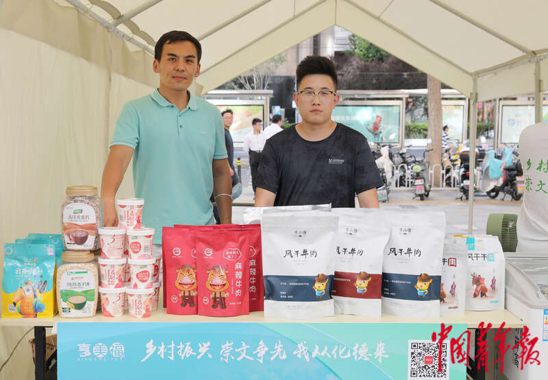 8月18日,北京市东城区崇文门商圈,年轻的商户正在推荐来自内蒙古化德县的土特产。据介绍,本次文化生活节期间,专门开设了公益展区,展销来自内蒙古阿尔山、化德县,湖北郧阳以及西藏当雄四个地区的近20种特色商品,通过消费扶贫,助力相关地区乡村振兴。中青报·中青网记者陈剑/摄