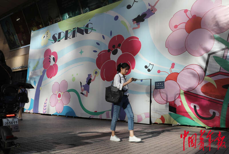 8月18日,北京市东城区崇文门商圈,一位消费者从一处展板前走过。中青报·中青网记者陈剑/摄