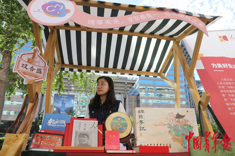 8月18日,北京市东城区崇文门商圈,一处文创展台前。据介绍,本次文化生活节期间开设的文创板块,集合了潮玩品牌、汉服曲艺、文创饰品等元素为一体。中青报·中青网记者陈剑/摄