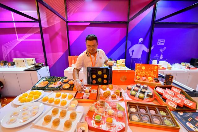 8月22日,参会商在2023天津台企新品采购洽谈会上摆放展品。新华社记者 孙凡越 摄