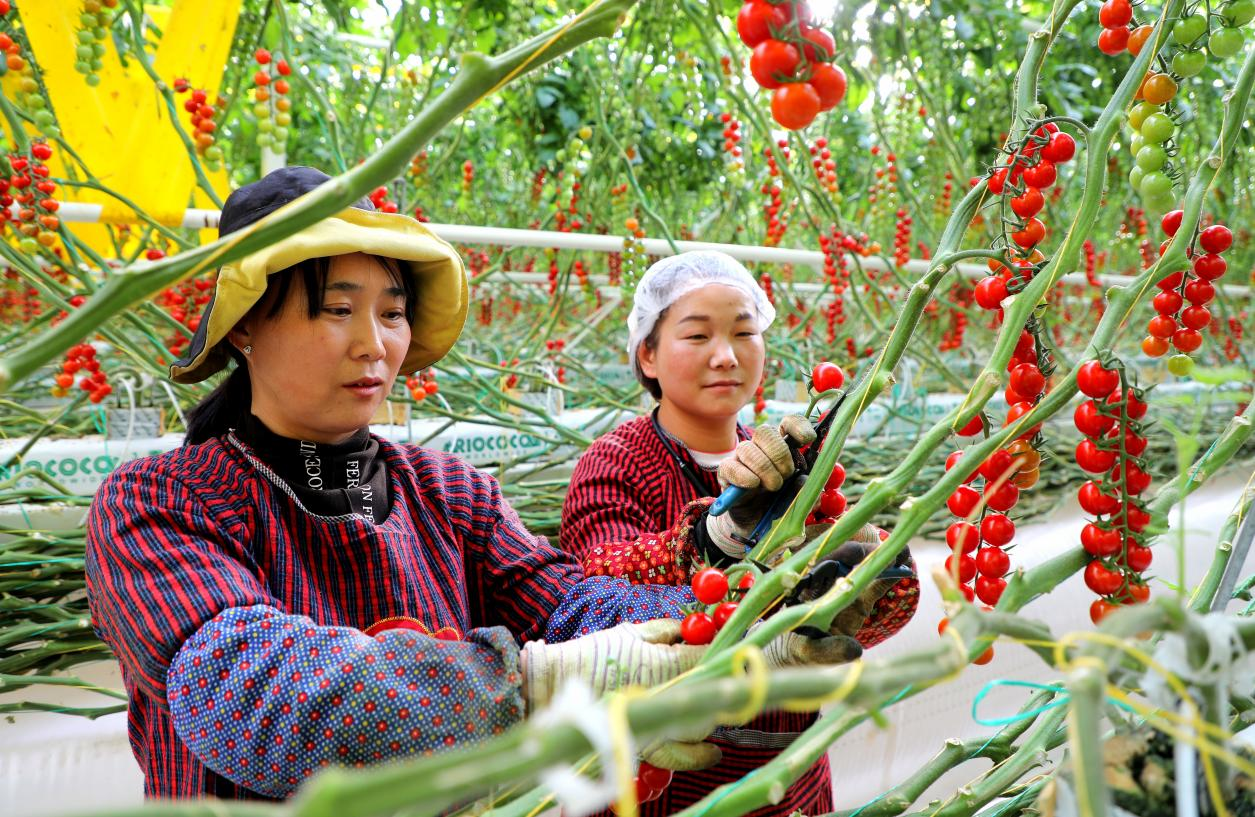 李自军介绍,公司的主要产品是从法国引进的优质串番茄,具有抗病能力强、果型串型好的特点,每串可坐果12-16粒,采用吊架立体栽培技术,充分利用纵向空间,成熟植株身高可达18米,产量可达每平方米32公斤,年均出仓价每公斤达到40~50元,产品主要销往中东部地区和沿海城市的中高端市场,主要客户是山姆、盒马、华润、永辉、佳农等大型超市卖场,年产串番茄约9000吨,年产值约2.5亿元。