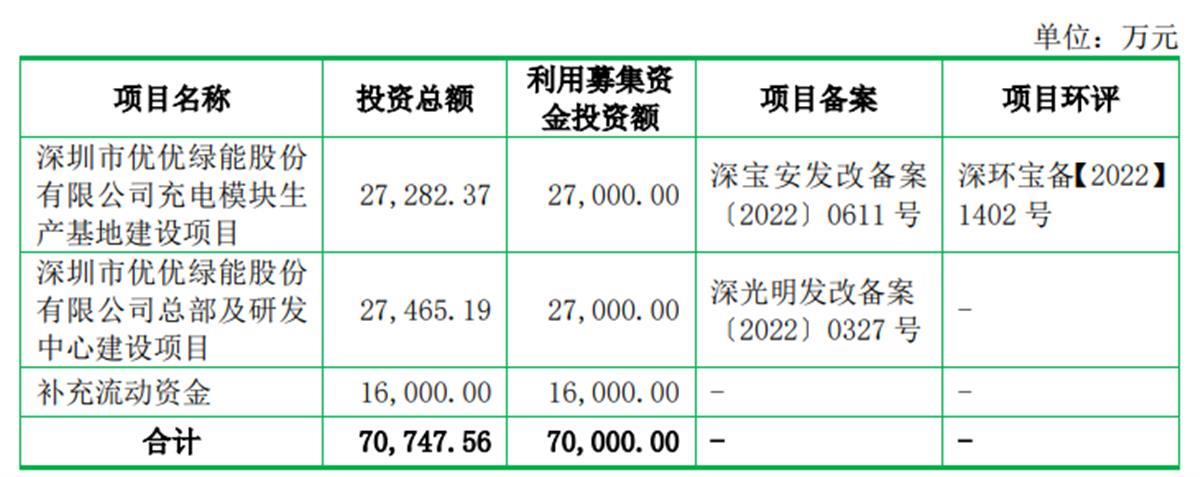 2023年8月24日深交所披露:深圳证券交易所上市审核委员会定于2023年8月31日召开2023年第69次上市审核委员会审议会议,届时将审议深圳市优优绿能股份有限公司(以下简称“优优绿能”)的首发申请。优优绿能拟在深交所创业板募资70,000.00万元,用于“深圳市优优绿能股份有限公司充电模块生产基地建设项目”“深圳市优优绿能股份有限公司总部及研发中心建设项目”“补充流动资金”。 目前,A股上市公司中暂无仅从事充电模块业务的上市公司,如果优优绿能本次成功IPO,将成A股“充电模块第一股”。