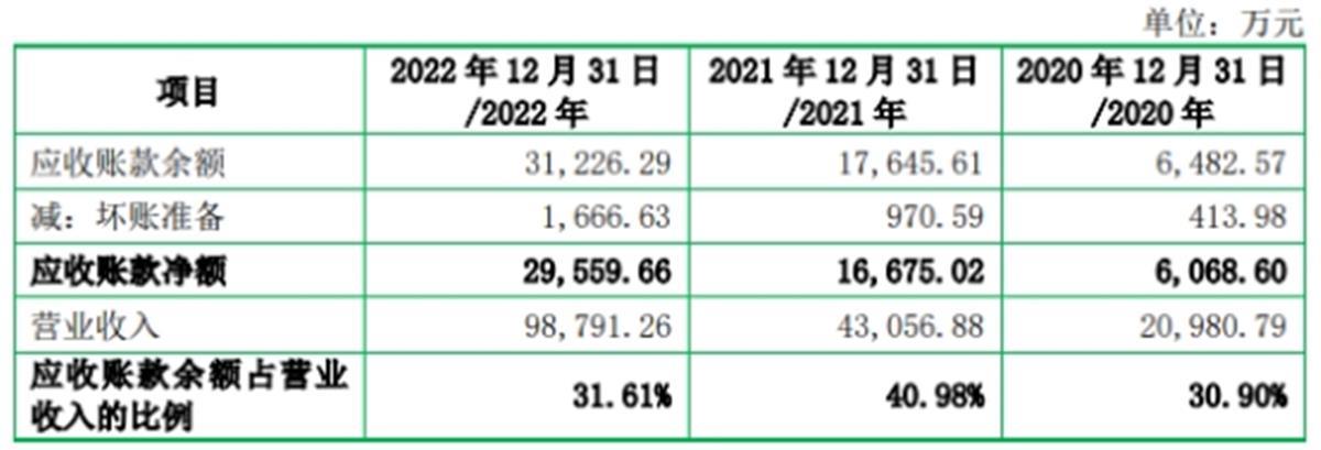 招股说明书显示,报告期内优优绿能的应收账款余额分别为6482.57万元、17645.61万元和31226.29万元,占当期营业收入的比重分别为30.90%、40.98%和31.61%。其中,受关联交易所累,万帮数字和ABB两家客户就占据了超过50%如果这些客户出现财务状况或经营情况的重大不利变化,将面临应收账款不能足额收回的风险。