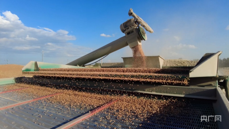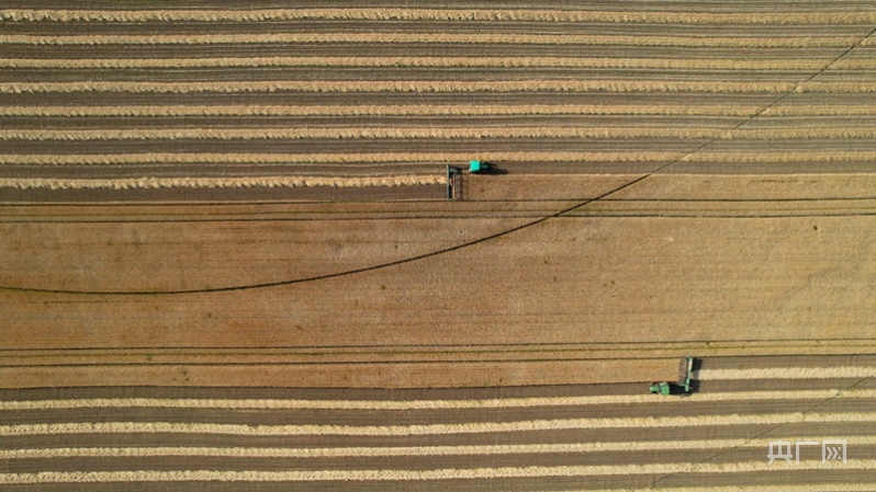 大型收割机在麦田驰骋穿梭(央广网发李宛霏摄)