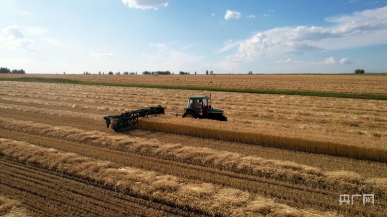 阿荣旗库伦沟林场正在收割小麦(央广网发李刚摄)