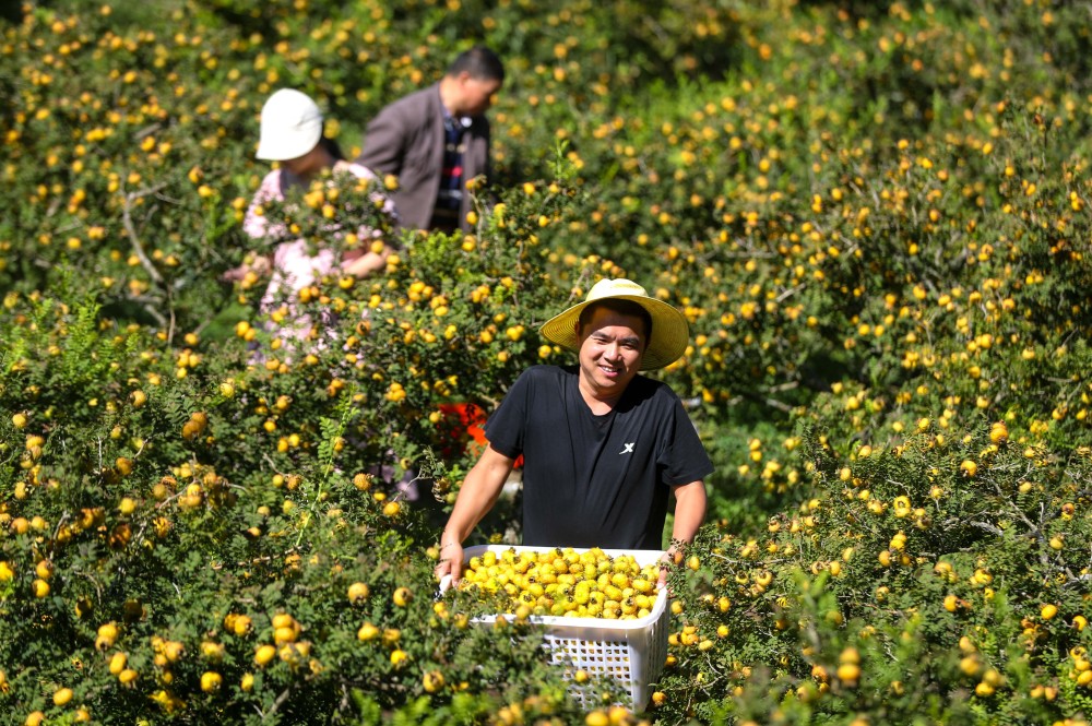 初秋时节,贵州省龙里县的10.5万亩刺梨陆续进入采收期,当地村民忙着采摘、加工刺梨,供应市场。