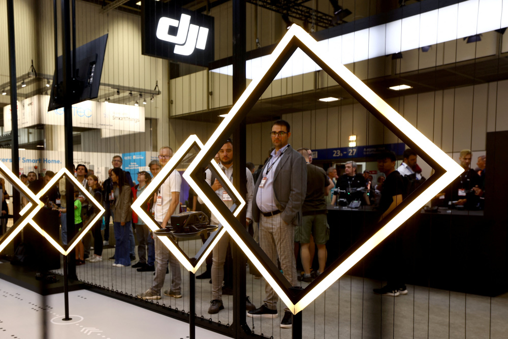 9月1日,人们在德国柏林国际消费电子展上参观大疆展台。新华社/路透