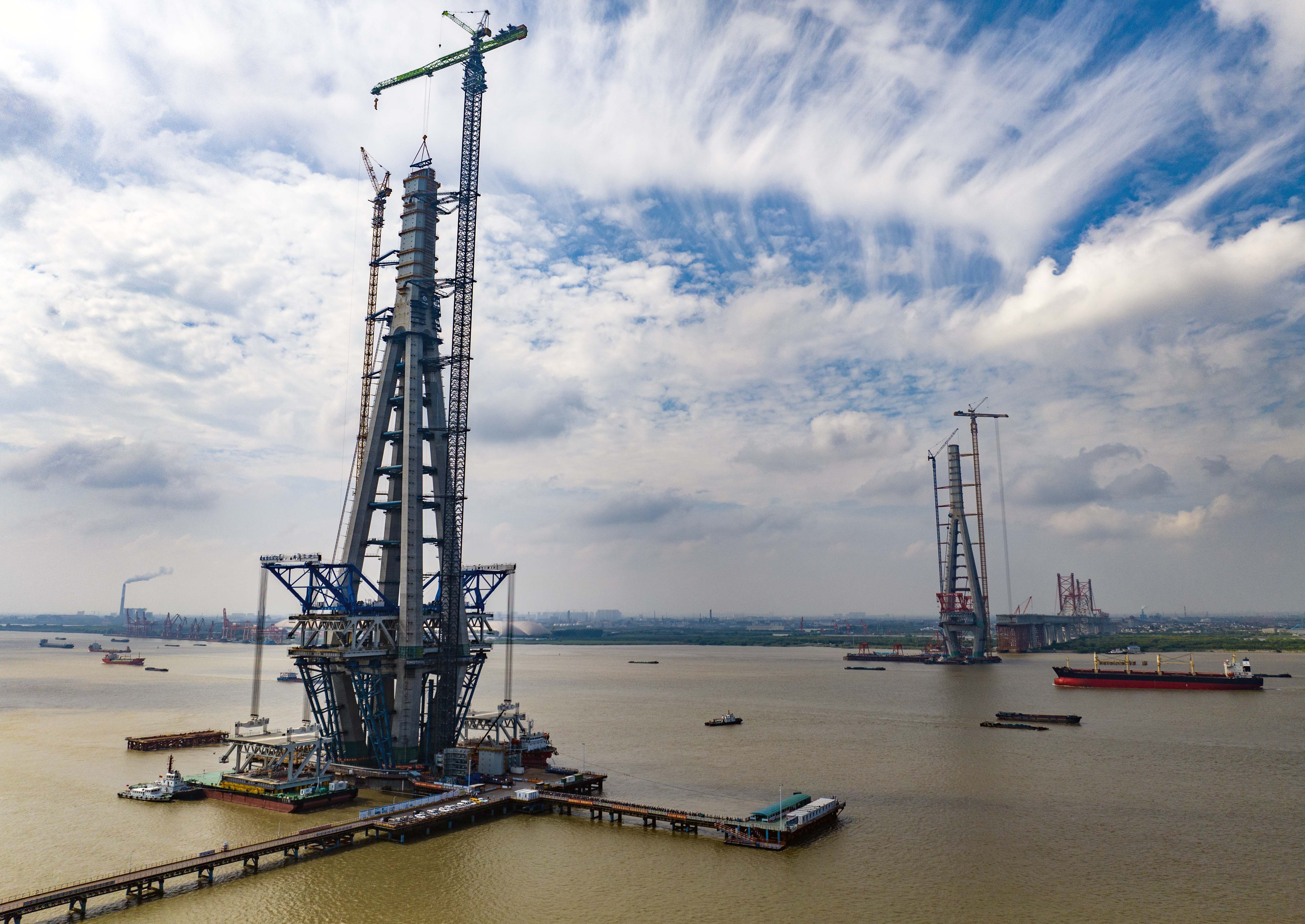 当日,常泰长江大桥主航道桥钢桁梁悬臂架设全面展开,并完成首对钢桁梁对称悬拼,标志着常泰长江大桥主航道桥钢桁梁架设进入“快车道”,预计2024年5月主航道桥将实现合龙。