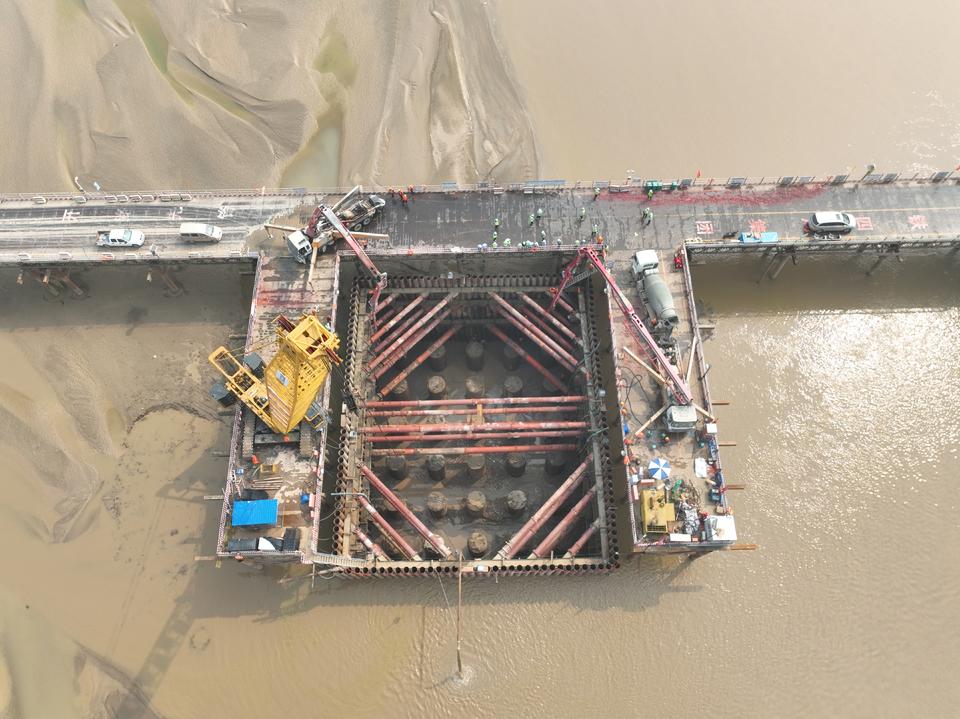 9月5日,由中铁四局承建的雄商高铁黄河特大桥水中墩顺利封底。