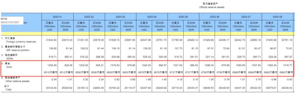 值得关注的是,在黄金储备上,央行已连续10个月增持黄金。数据显示,中国8月末黄金储备报6962万盎司,环比增加93万盎司。