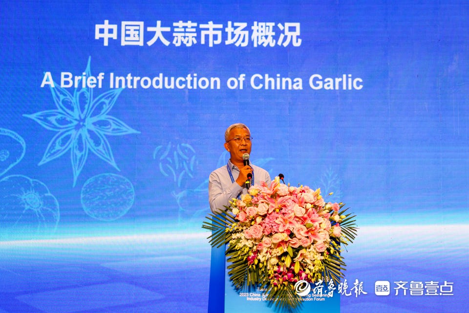 江苏福多美生物科技有限公司副总经理曹梦辉从面积和产量、出口导向、影响价格因素、国内市场四个方向分享了《中国大蒜市场概况》的报告。