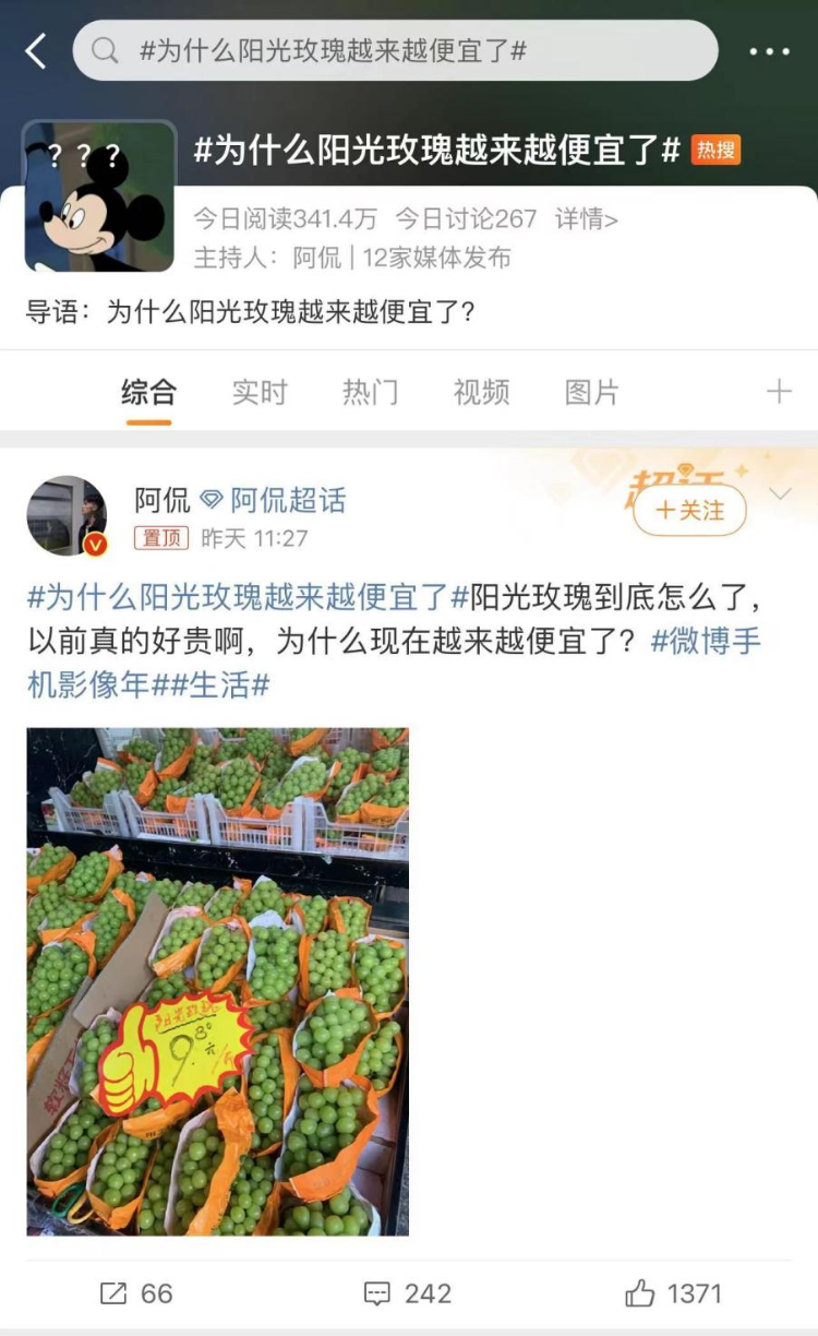 曾经价格“高高在上”的阳光玫瑰,为何如今“泯然众人矣”?