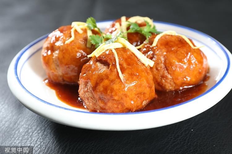 四喜丸子是中国传统名菜之一,以三肥七瘦的猪肉用传统方式剁成肉馅制作成大个儿丸子,而后油炸再蒸制而成。四喜丸子看起来色泽金黄,闻起来香味四溢,吃起来爽嫩酱香、松而不散,寓意“福、禄、寿、喜”人生四大喜事。逢有重大喜庆之事,宴席上必备此菜。