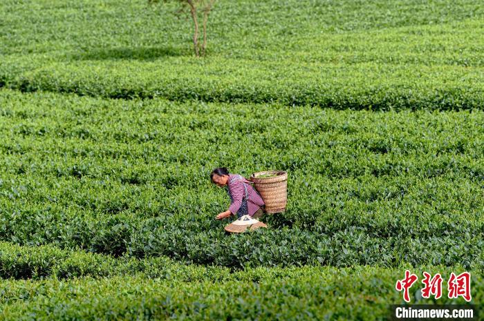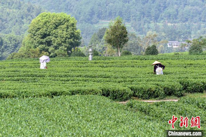 图为茶农在贵州凤冈万亩茶园采茶。林剑摄