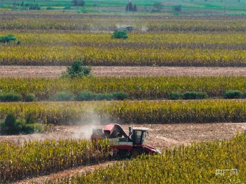 收割机在地里收割玉米(央广网发邹雄摄)