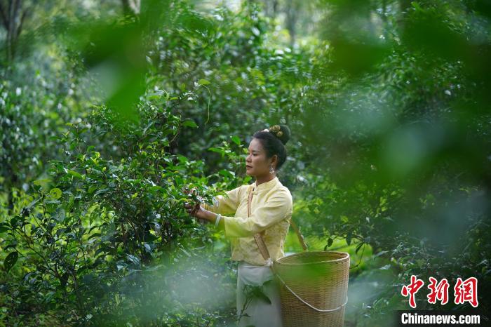 9月15日,云南普洱景迈山茶农在古茶林里采茶。 中新社记者刘冉阳摄