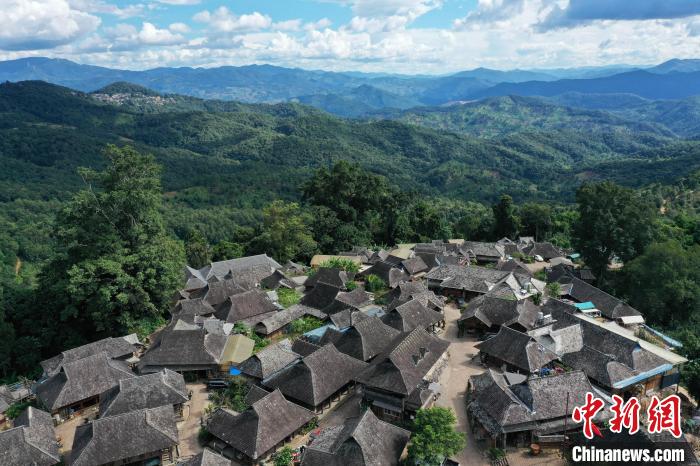 9月16日,云南普洱景迈山布朗族芒景村翁基小组(无人机照片)。 中新社记者刘冉阳摄