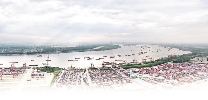 武汉天兴洲以东70公里长江岸线上,滚滚长江留下一个深水良港,阳逻港在此巍然矗立。