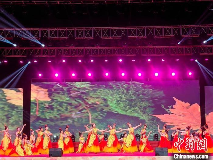 9月27日,第22届吉林·蛟河长白山红叶旅游节拉开帷幕,演员在开幕式上表演歌舞。 石洪宇摄