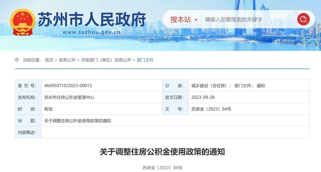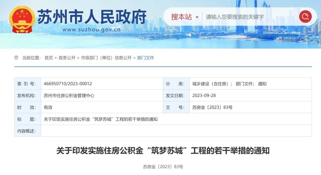 现代快报讯(记者高达)苏州住房公积金使用政策有调整。9月28日,苏州市政府官网发布了《关于调整住房公积金使用政策的通知》与《关于印发实施住房公积金“筑梦苏城”工程的若干举措的通知》。内容主要包括公积金贷款额度提升、贷款年龄延长、二孩家庭家庭首套或第二套自住可贷额度上浮30%,本科及以上人才在苏州缴存住房公积金贷款额度在可贷额度基础上可上浮50%等。现代快报记者注意到,两项新规均将于今年10月10日起施行。原文如下: