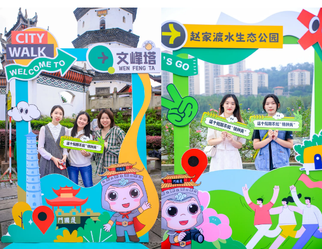 在合川城区,“CityWalk一起‘惠’玩合川”活动引人关注。在合川美术馆、图书馆、卢作孚旧居、马门溪龙雕像、赵家渡公园、文峰古街等地,CityWalk打卡点受到游客青睐,大家纷纷参与活动合影分享,扫码领取合川桃片等礼品,旅游互动体验感得到增强。