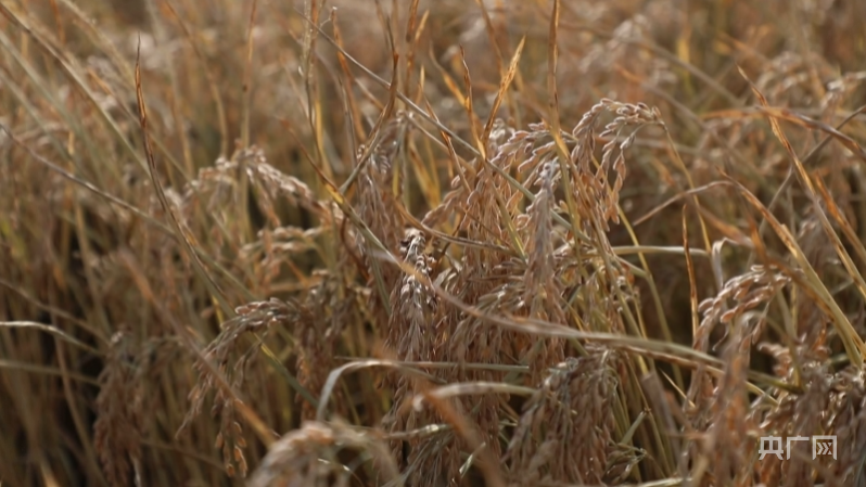 大型水稻收割机在一望无垠的金色稻田里来回作业(央广网发欧戈摄)