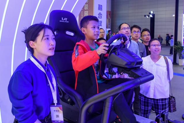 10月21日,小朋友在2023世界物联网博览会活动现场体验智能驾驶。新华社记者 李博 摄