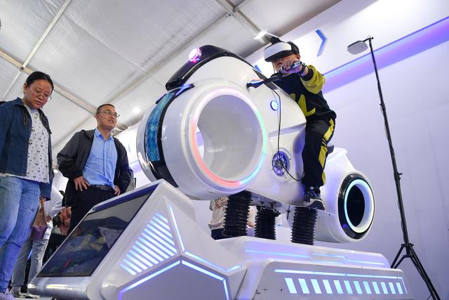 10月21日,小朋友在2023世界物联网博览会活动现场体验智能娱乐设备。新华社记者 李博 摄