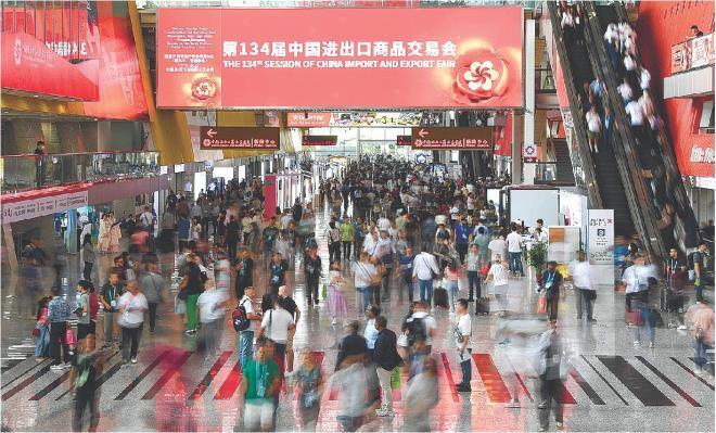 10月15日至11月4日,第134届广交会在广州分三期举办。大幕开启,万商云集,境外采购商踊跃与会,参展企业热情高涨,现场洽谈成交活跃。新市场、新潮流、新合作的背后是“世界工厂”的转型升级和高质量发展,凸显中国对外开放的大门越开越大。