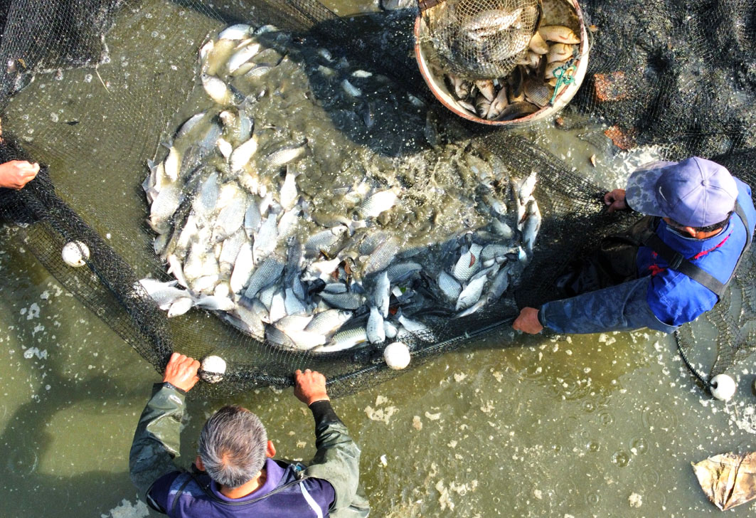 扬州的养鱼人通常选择在冬天进行干塘,那时气温低,鱼成活率高。