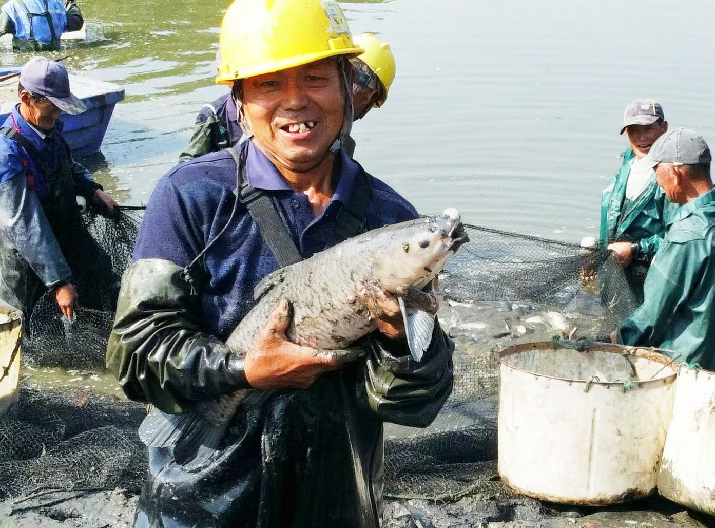 李桂杰家的鱼,基本都是混养鱼塘,主要养有青鱼、草鱼、鲫鱼等一些市场上常见的鱼类,“我们家养鱼,面积大,养的种类也比较多。”