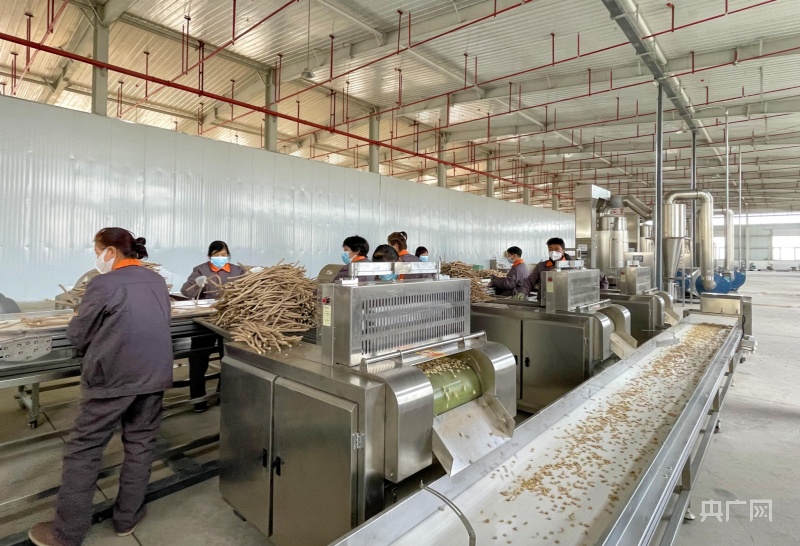 工人正在加工中药材(央广网发王晓泾摄)