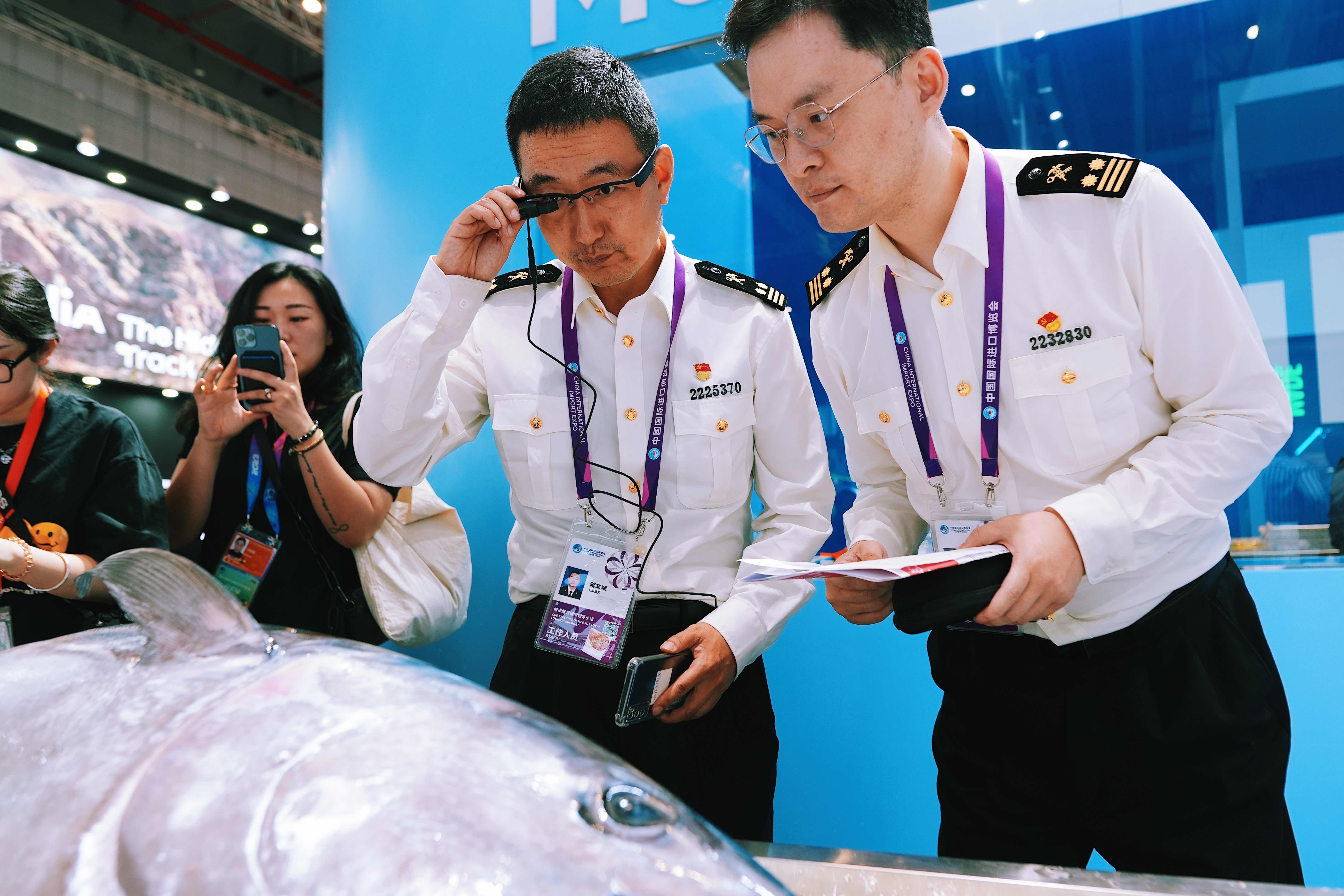 11月5日,上海会展中心海关在国家会展中心(上海)国家馆对马耳他金枪鱼实施现场监管。陈兴洲摄