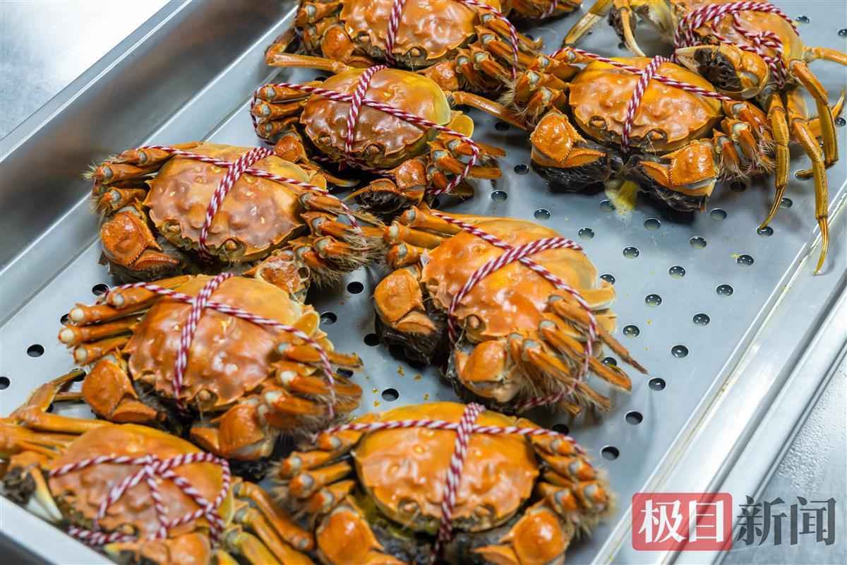 中国河蟹协会副会长程佑河介绍,喜鹊湖螃蟹养殖基地采用仿生态养殖模式,投喂活鲜鱼、螺蛳、小麦、玉米等,饵料“荤素搭配”,产出的螃蟹平均体重175克至200克。
