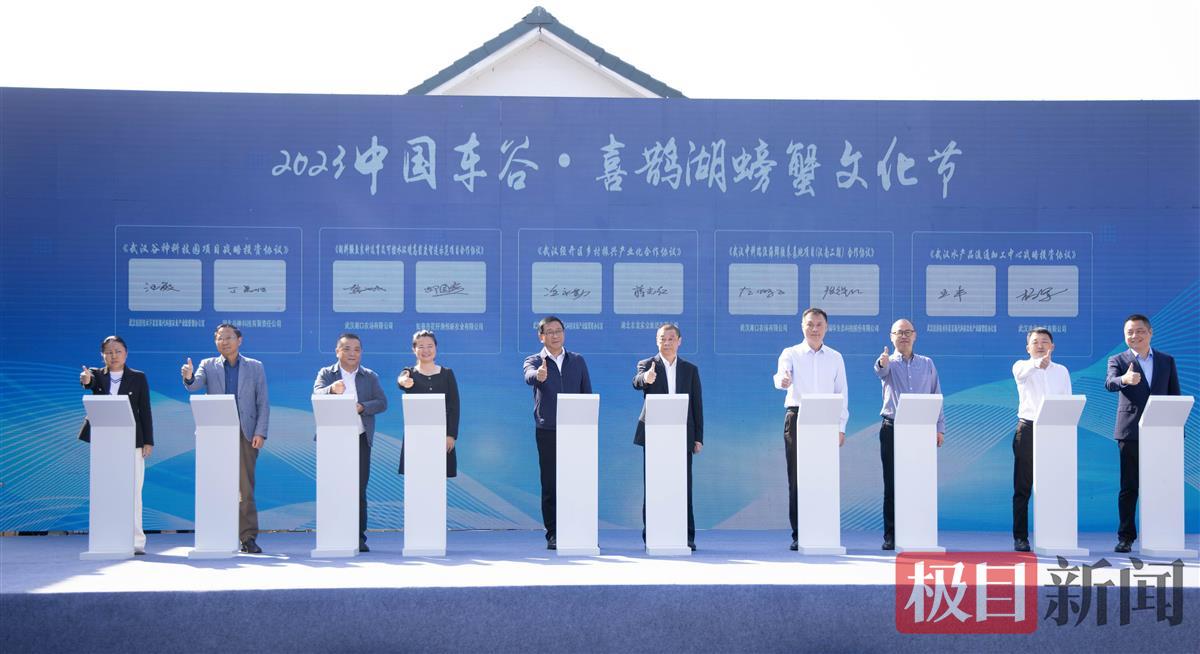 当天,湖北大邦楚王农业发展有限公司、武汉供销商贸有限公司等大客户与湘口街水产养殖大户达成购销合作,推动喜鹊湖螃蟹“爬”向餐桌。