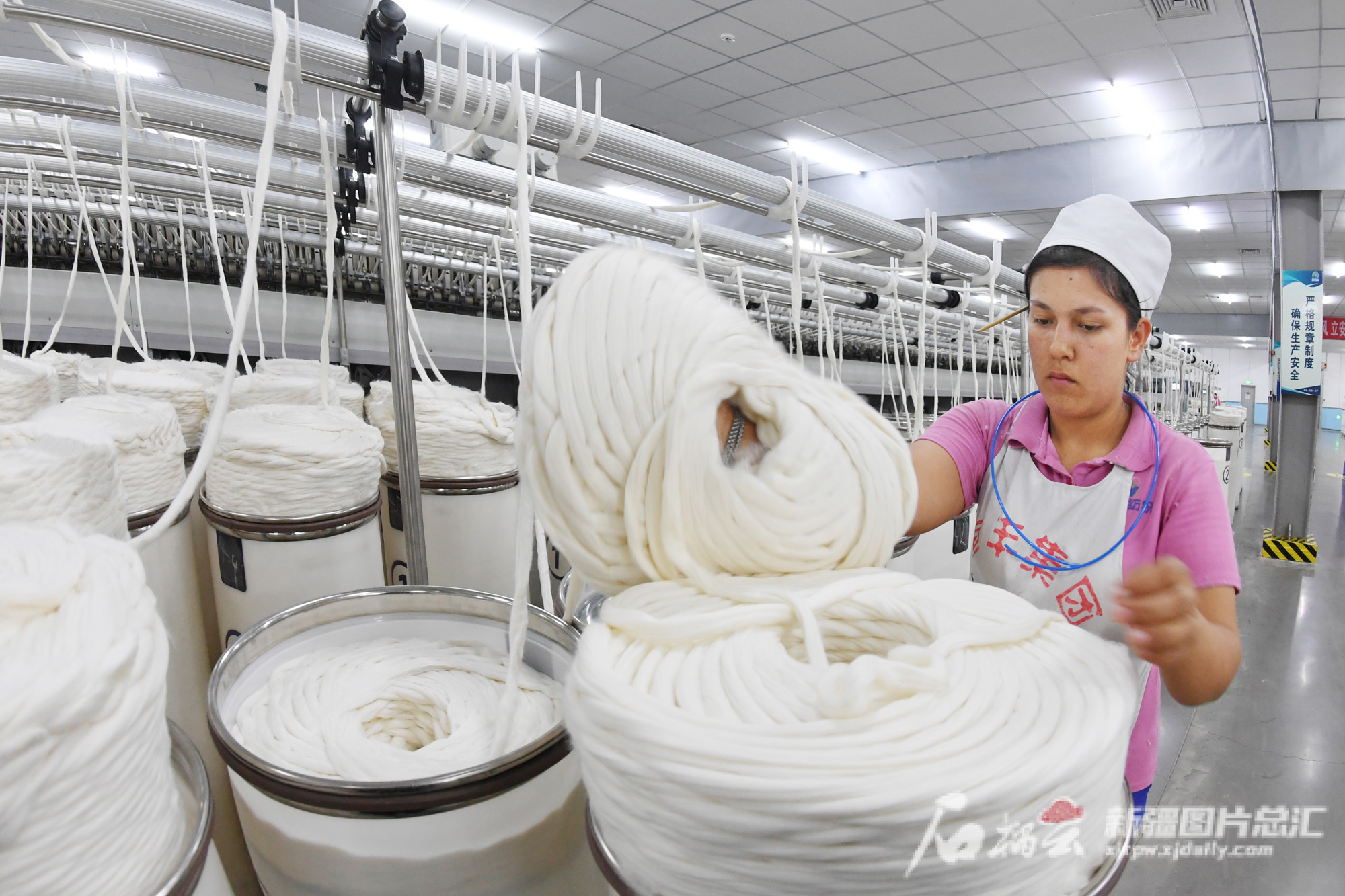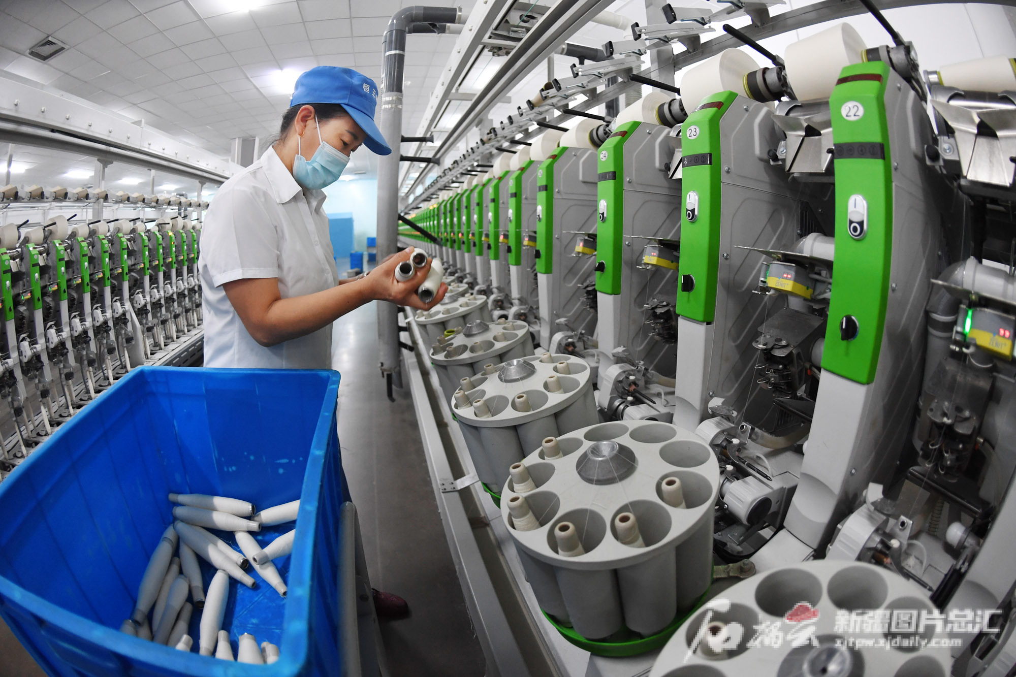 11月10日,工人在位于克州江苏产业园的克州润华纺织科技有限公司生产车间作业。该公司是一家集纺纱、织布及高端纺织品研发生产于一体的大型纺织企业,公司整体规模为年产纱线30万锭。