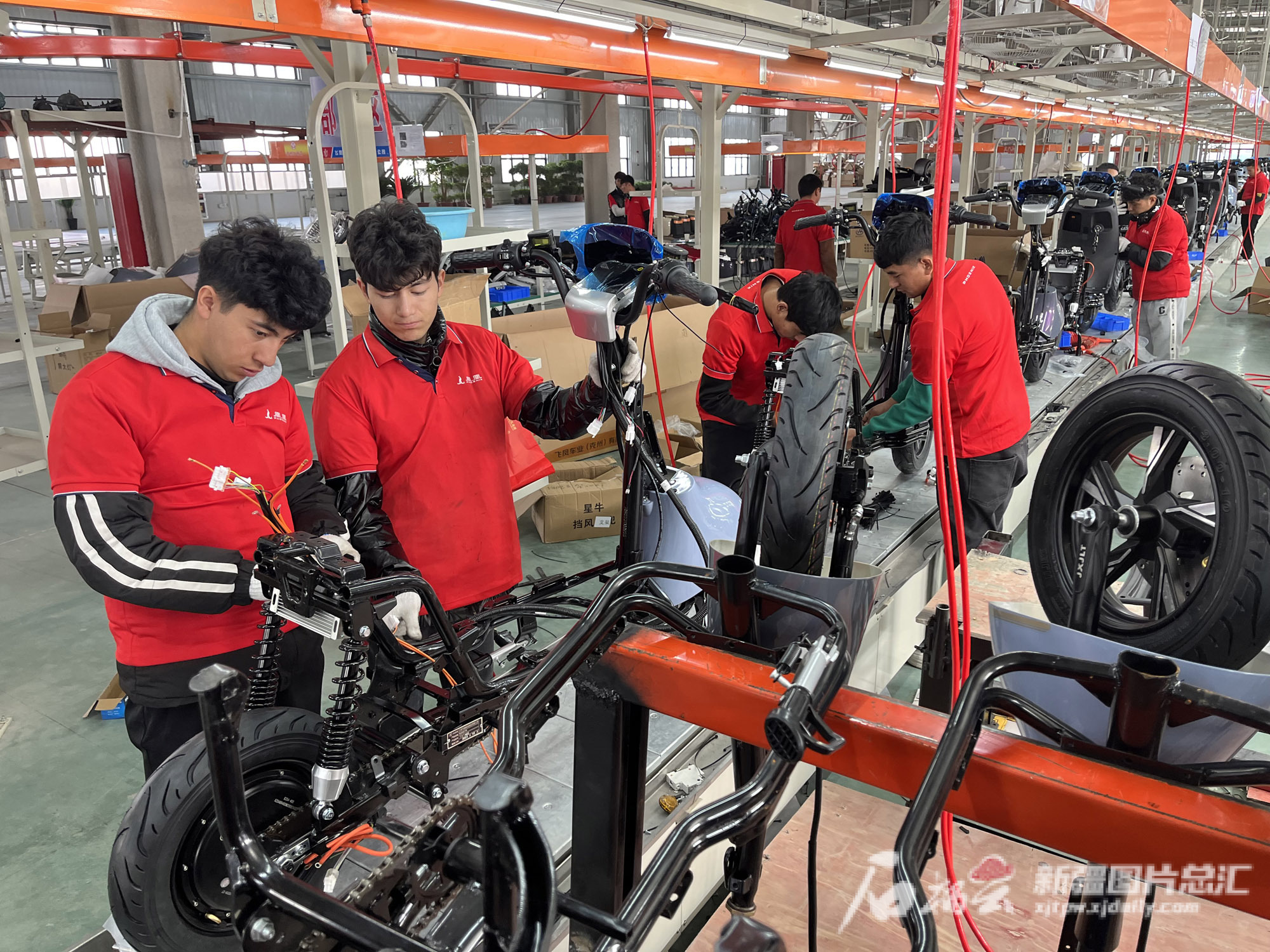 11月10日,工人在位于克孜勒苏柯尔克孜自治州江苏产业园的飞凤车业(克州)有限公司生产车间组装电动摩托车。该公司是一家专业生产、销售、出口电动摩托车、电动自行车和电动三轮车的新能源企业。公司于今年8月开始试营业,预计年均产2—3万辆各式电动车。