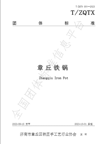 2018年4月,章丘区市场监管局推动成立了章丘区铁匠手工艺行业协会;2020年,该局积极指导铁匠手工艺行业协会制定《章丘铁锅》团体标准,并在2023年进一步完善该标准;2022年,“章丘铁锅”集体商标顺利经国家知识产权局核准注册。
