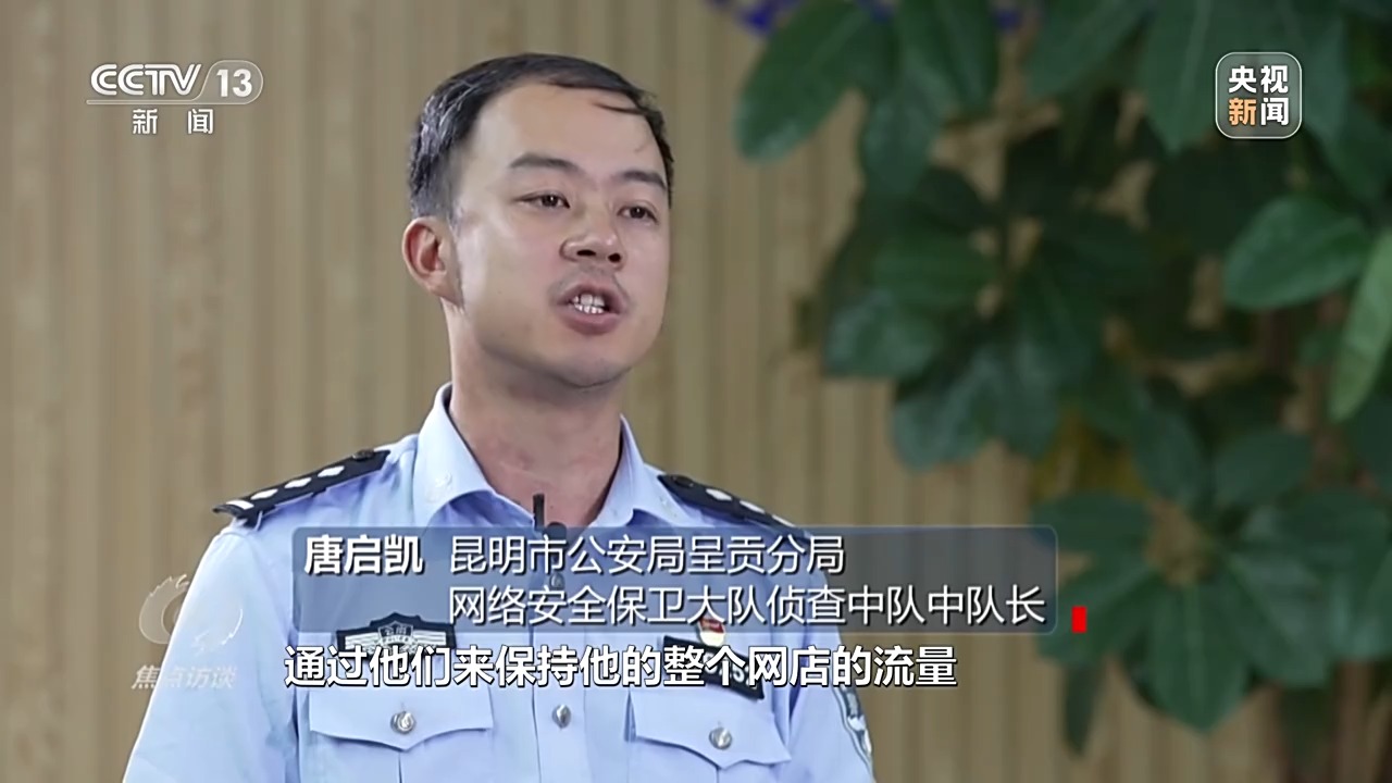 昆明市公安局呈贡分局网络安全保卫大队侦查中队中队长 唐启凯:因为购物平台有排名、有显示的页面、有各种权重的计算,商家每隔一段时间都有需求,吸引买家,通过他们来保持整个网店的流量。