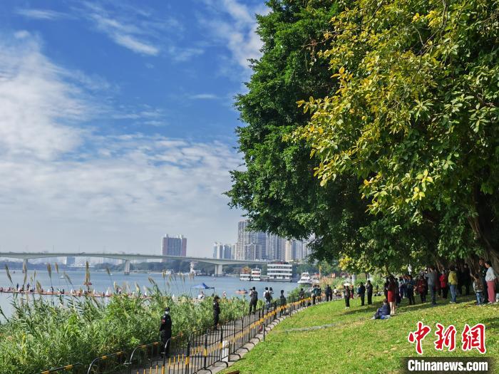 民众在南宁市邕江沿岸公园绿地观赛。段宜君 摄