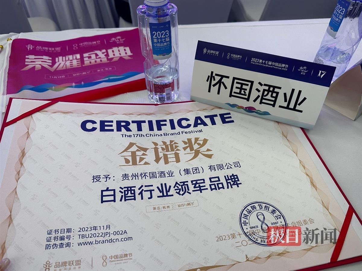 近日,2023第十七届中国品牌节在杭州开幕,6000余家全国知名品牌齐聚一堂,共赴品牌盛宴。贵州怀国酒业集团有限公司(以下简称怀国酒业)荣获2023中国白酒行业领军品牌金谱奖,这也是怀国酒业第二次获此奖项殊荣。