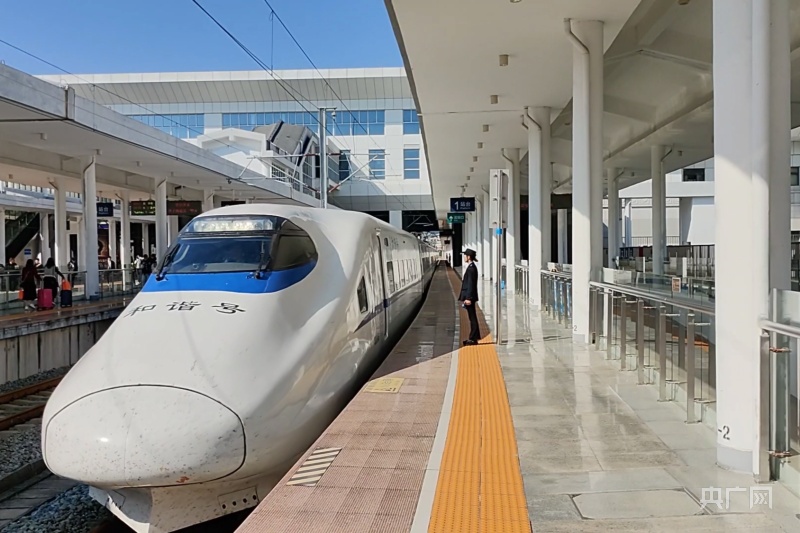 23日,D6364次试运行列车从龙岩站驶出(央广网发 刘俊炜 摄)